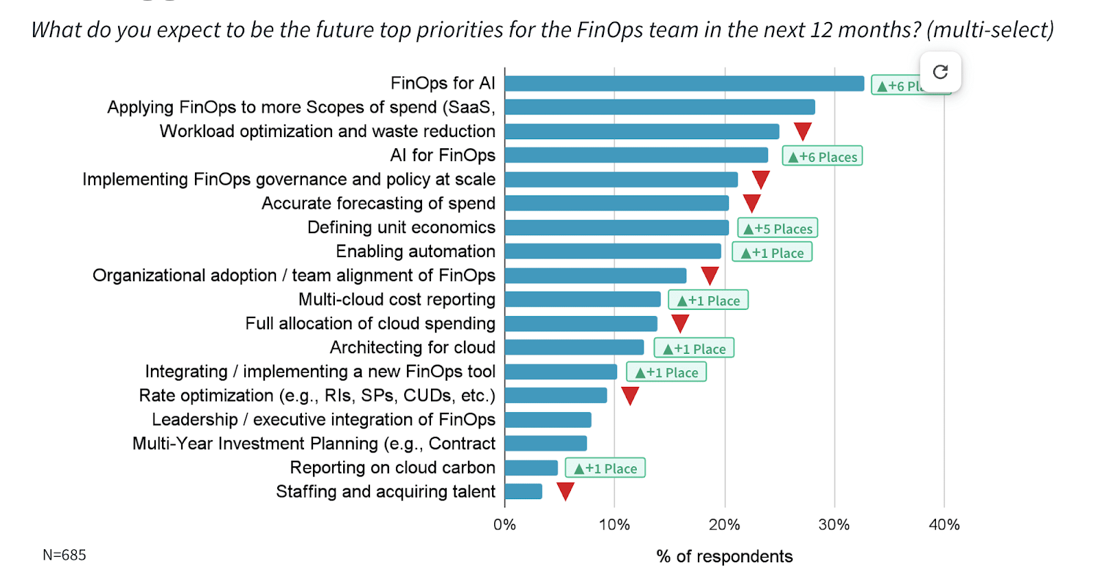 TJ: How have priorities changed? Staffing year over year is still the bottom of this chart, same as last year. Multi-investments are starting to show up as a priority. Unit economics still seems like it's a little low, but then we also see a big push from the FinOps Foundation in leadership and executive integration or influence, but that also seems low. Cathal, you had some other thoughts.