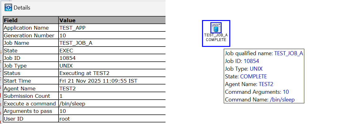 - Manually changed the agent of Job A to TEST2 in Reset Definition when the job was in APPHOLD
