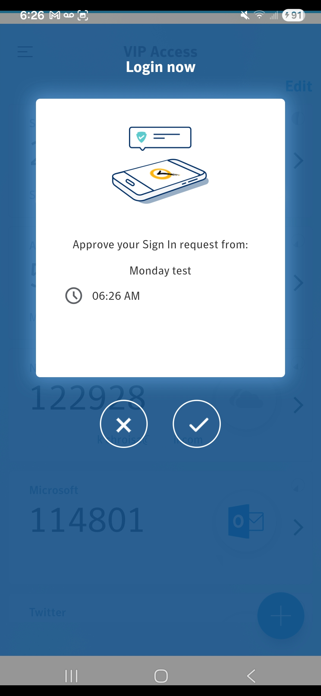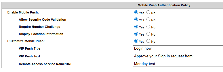 > username) and the VIP factor up to Symantec VIP for validation (Push, OTP,