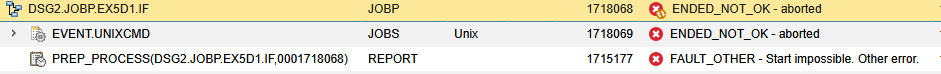 For jobs in Unix too job fails but the error is different.