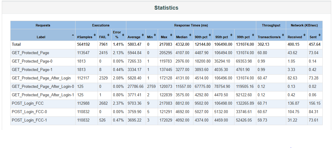 During the test, I observed that the response time for the authentication FCC pages is quite high (around 28,000 ms).