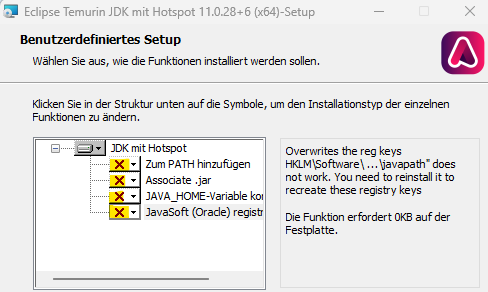 During the installation of the Eclipse JDK, make sure that your current environment settings are not overwritten. Thus, when you see the options