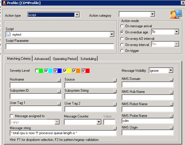 The Action Type in this case is set to "script" because we want to check in the Backend if we have 2 alerts (CPU load and queue) active at the same time for the same robot.