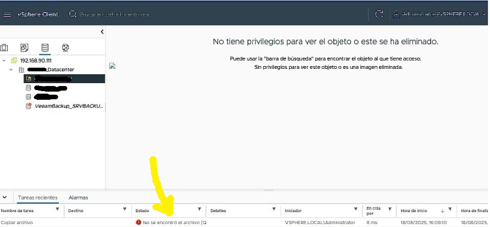 Transferencia incompleta: Si estás copiando archivos directamente (por ejemplo, vía SCP, WinSCP o Datastore Browser), es posible que los archivos grandes como los .vmdk se estén cortando o no se copien completamente, lo que provoca el error al finalizar.