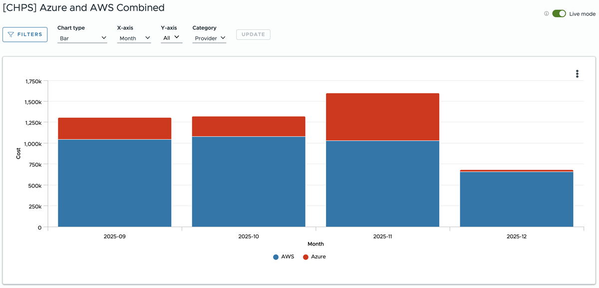 Example FlexReport: Combining Datasets - Multi-Cloud Cost History by Service