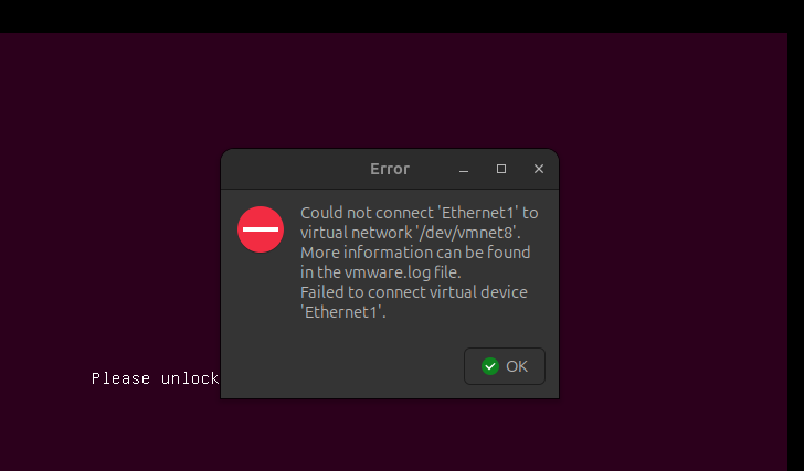 Subject: Error toggling removable device: Failed to connect virtual device 'ethernet1'.