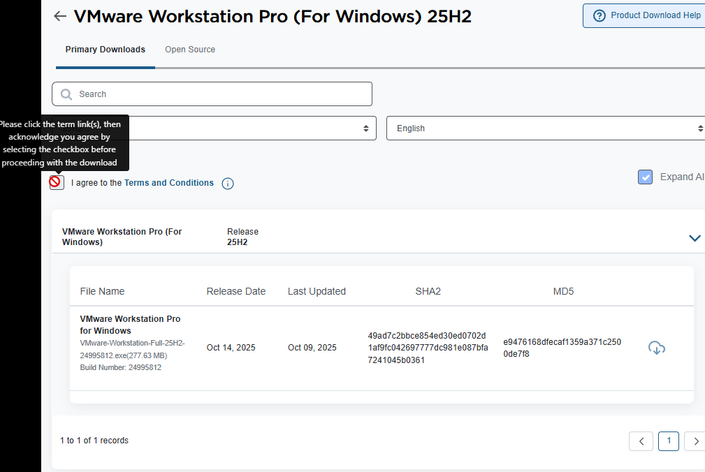 I have 17.6.2 installed and want to upgrade to latest version. I go though the process and get to the download page. From there, I cannot "agree to terms and conditions", I get the red circle with diagonal line and cannot proceed further. Broadcom says, "VMware Workstation Pro is now free for commercial, educational, and personal use. You no longer require a license key."